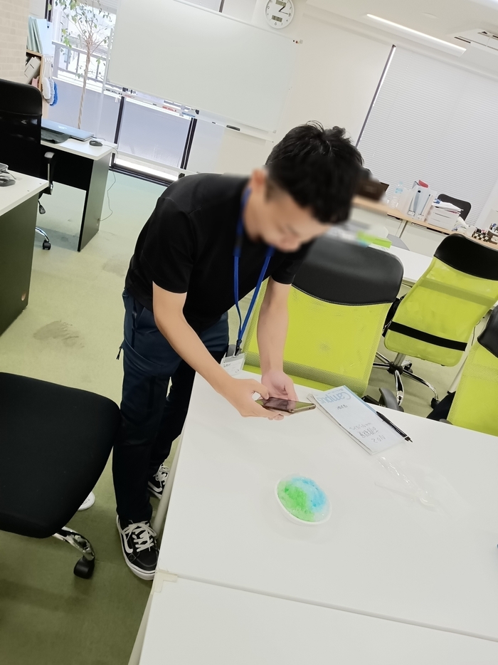 出来上がったかき氷をみなさん、それぞれ写真に撮られています。