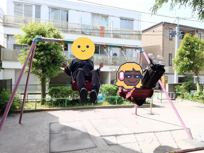 鉄棒をしたり、みんなでバレーボールをしたり、ベンチに座ってボーっとしたり、