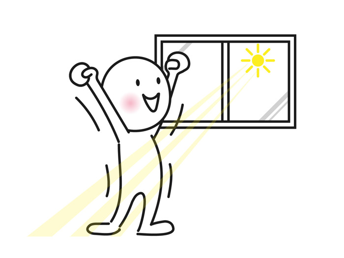 朝起きたらカーテンを開け、窓越しで構わないので太陽の光を浴びましょう。太陽光は体内時計をリセットし、セロトニンの分泌を促す効果が期待できます。
