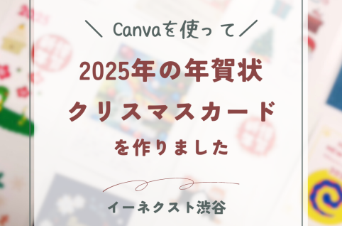 こんにちは!イーネクスト渋谷のHです🍞 先日デザインプログラムの一環として年賀状・クリスマスカード作りを行いました🎉 今回も、イーネクスト渋谷ではかなりおなじみのツールとなってきた、Canva(キャン...
